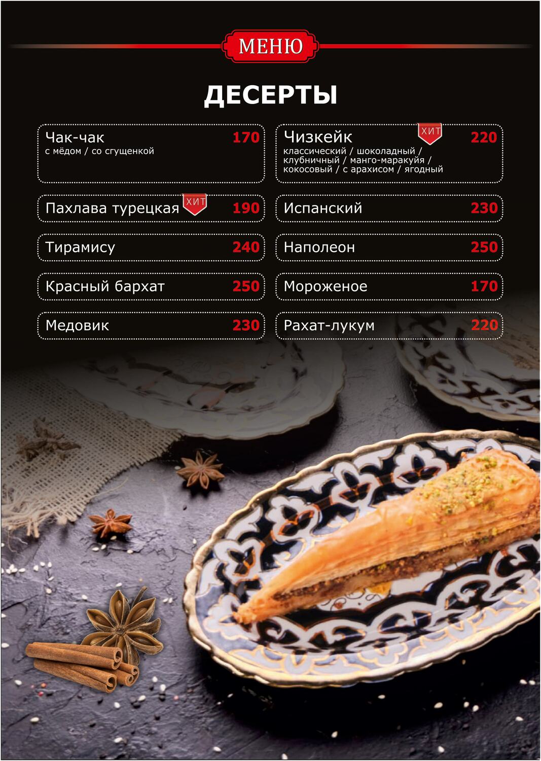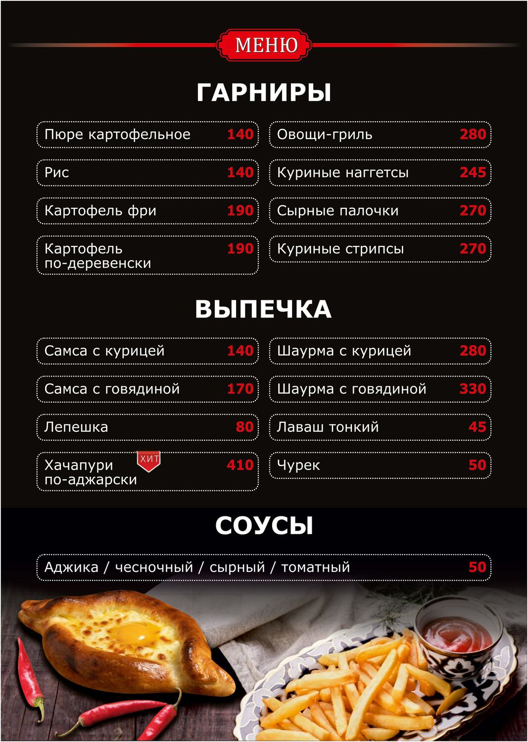 . МЕНЮ .