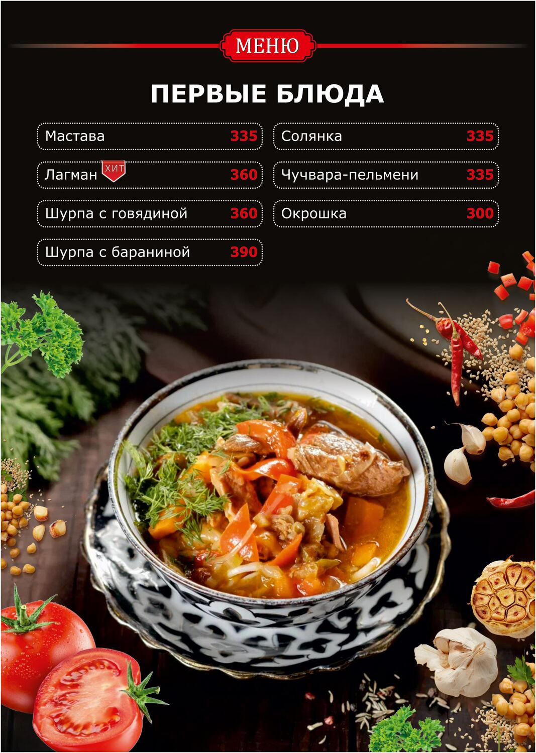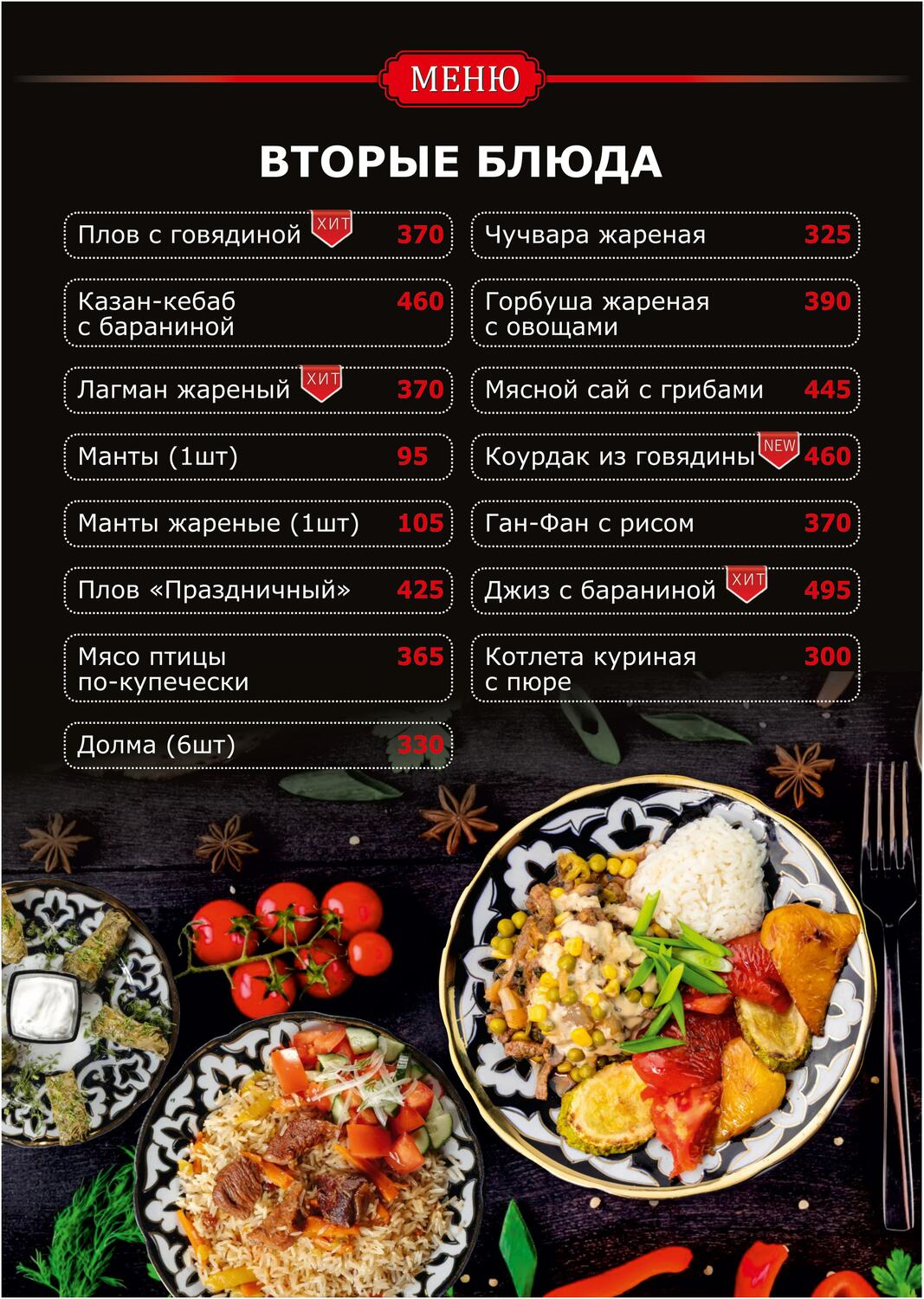 плов, шурпа, лагман, самса, манты и блюда мангальной кухни!